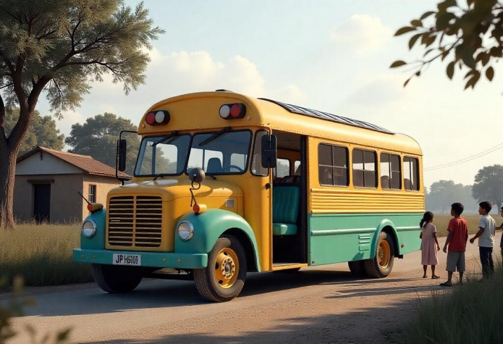 The bus including Laptops, A television and Speaker loaded with lesson plans on using the digital resources and use it to learn and enhance the skills of youth from the villages.